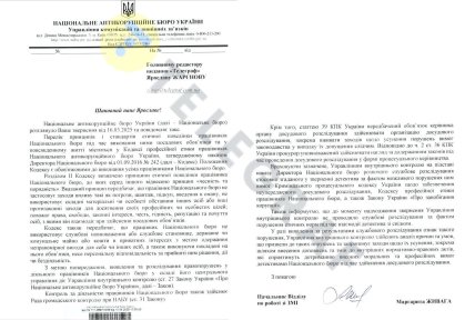 "Управлінням внутрішнього контролю на підставі наказу Директора Національного бюро розпочато службове розслідування стосовно згаданого у зверненні детектива за фактом можливого порушення ним вимог Кримінально-процесуального кодексу України щодо забезпечення неупередженого досудового розслідування, Кодексу професійної етики працівників Національного бюро, а також Закону "України про запобігання корупції", — йдеться у відповіді Нацбюро на запит видання.