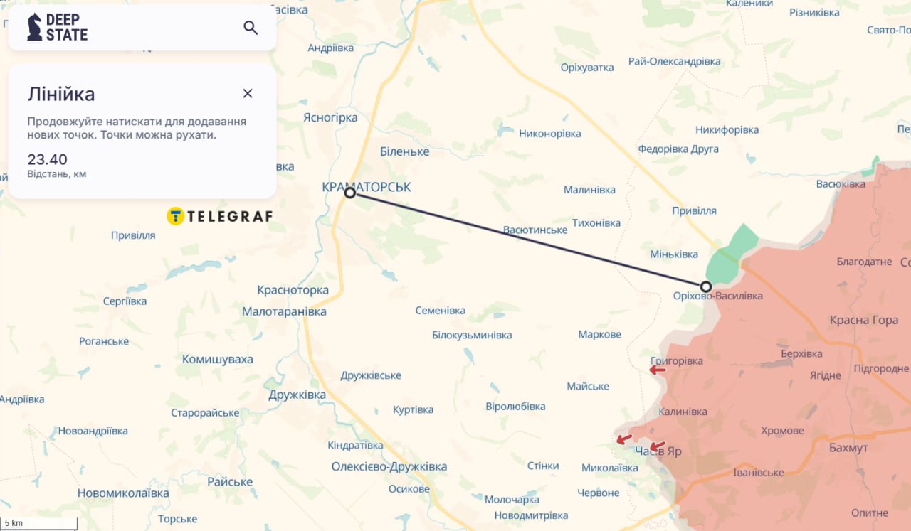 Зазначимо, що Краматорськ наразі знаходиться за 23 кілометри від лінії фронту.