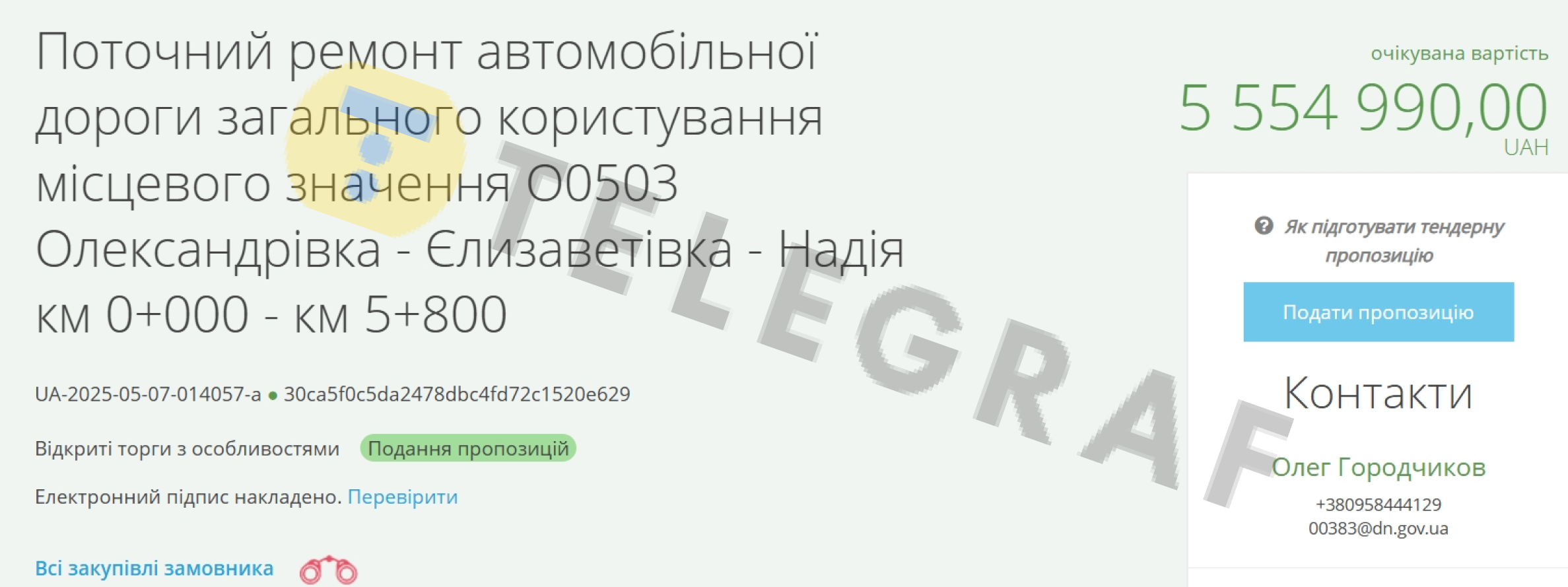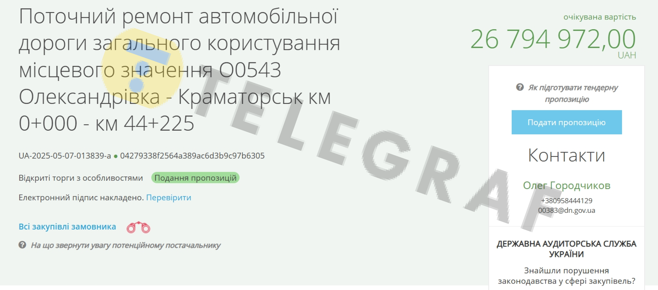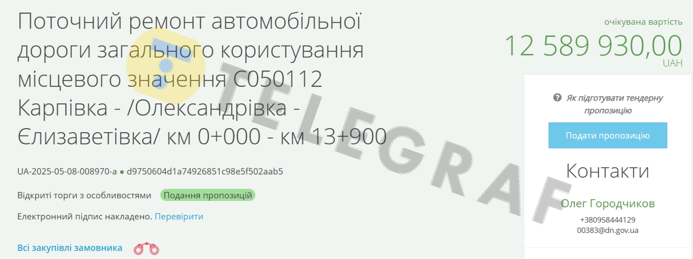 Очікувана вартість закупівлі 26 794 972 гривень. Ремонт дороги мають закінчити до кінця 2025 року.