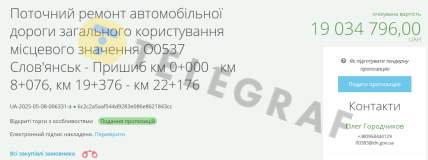 Також мають намір відремонтувати дорогу загального користування місцевого значення О0537 Слов'янськ — Пришиб за 19 034 796 гривень. Кінцевий строк подання тендерних пропозицій — 16 травня. А закінчити ремонт підрядник повинен буде до 31 липня 2025 року.