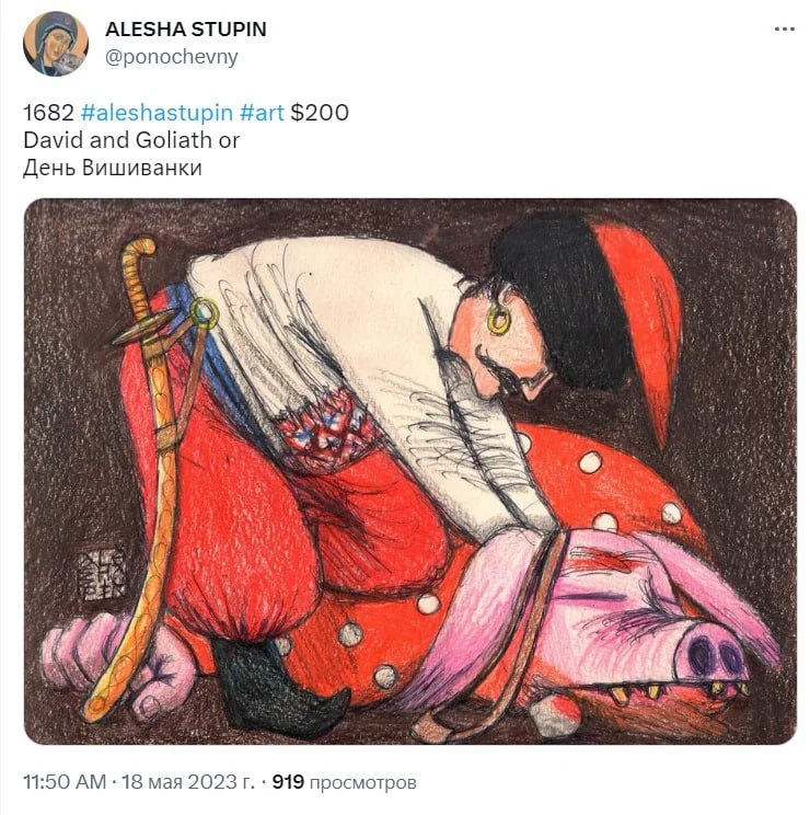 Мем із Давидом-козаком, що бореться з Голіафом-свинєю — художня сатирична карикатура, де Україна нібито постає як сміливий козак (Давид), що протистоїть Росії (Голіафу у вигляді свині). Цей образ нагадує про довгу історію боротьби за незалежність та нагадує про нинішній спротив агресору.