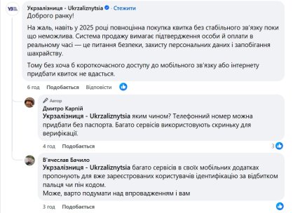 УЗ підкреслила, що такі механізми — це вимога часу: "Це питання безпеки, захисту персональних даних і запобігання шахрайству. Тому без хоча б короткочасного доступу до мобільного зв’язку або інтернету придбати квиток не вдасться."