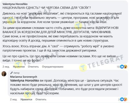 - Терміни відкриття Центрів єдності (Unity Hubs) та алгоритм їхньої роботи в кожній країні залежатиме від залученості партнерів, оскільки для забезпечення роботи необхідні приміщення, котрі будуть відповідати потребам Центрів (на одній з зустрічей з українцями за кордоном очільник міністерства та віцепрем'єр-міністр з відновлення України Олексій Чернишов зазначив: приміщення має бути площею хоча б 1500 кв. м – Авт.), а також для надання кваліфікованих послуг необхідно забезпечити якісний підбір та підготовку операторів Центрів, – зазначили у Міннац’єдності у відповіді на запит "Телеграфу".