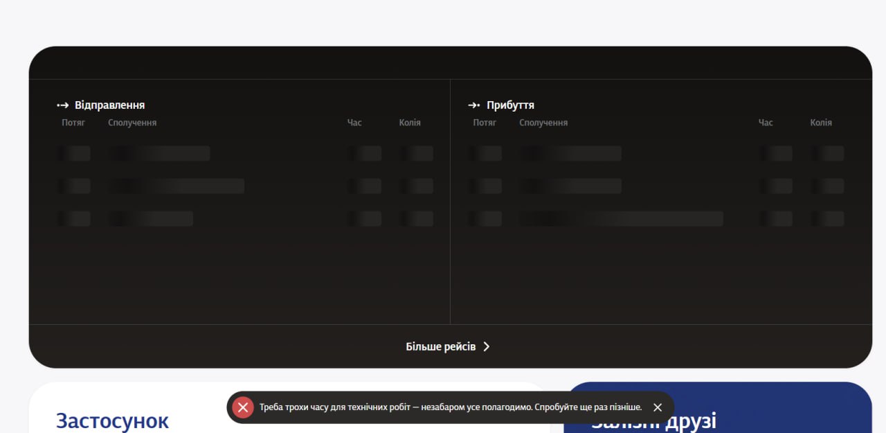 Сервіс "Укрзалізниці" знову не працював. Користувачі не могли зайти ні на сайт, ні у застосунок, аби придбати квитки.