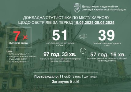 За його словами, загалом за минулий тиждень у Харків було сім влучань. В результаті — постраждали 11 осіб, серед них — дитина. 14-річний підліток отримав черепно-мозкову травму. Обійшлося без загиблих.