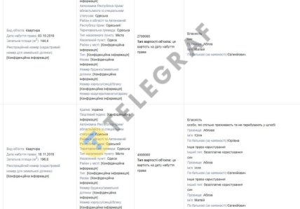 Крім автомобілів, сім'я володіє значним нерухомим майном в Одесі та Київській області. У їхній власності три квартири в Одесі загальною вартістю понад 10 мільйонів гривень, а також апартаменти в дачному котеджі у селі Грибівка.