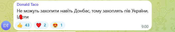 "Не можуть захопити навіть Донбас, тому захоплять пів України. Ід*оти", — пише один користувач.