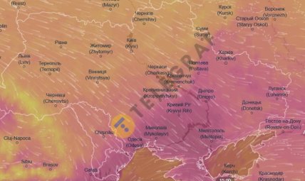 Дані метеорологічного радару Ventusky показують, що 16 червня приблизно о 12:00 в понеділок хмара жаркого повітря почне рухатись у напрямку західних областей України — відразу стане значно спекотніше. За ніч ця повітряна маса перетне половину території нашої країни.