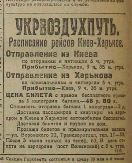 Цей переліт тривав 3 години 20 хвилин, що для того часу було значним досягненням у розвитку авіації. А квиток коштував 46 рублів 80 копійок — чималу суму для того часу. Але попит виявився достатнім, щоб уже з початку червня запустити регулярне сполучення між двома містами двічі на тиждень.