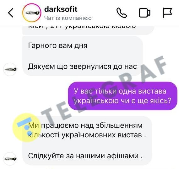 "Телеграф" вирішив з'ясувати, чому ж "Темний софіт" продовжує показувати виставити російською мовою. Кореспондент видання зв'язався зі студією через приватні повідомлення в Instagram, де отримав цікаву відповідь.