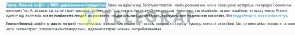 При цьому про діяльність приватних театрів не йдеться. Суворе регламентування мають інформаційні матеріали про вистави — вони повинні бути лише українською.