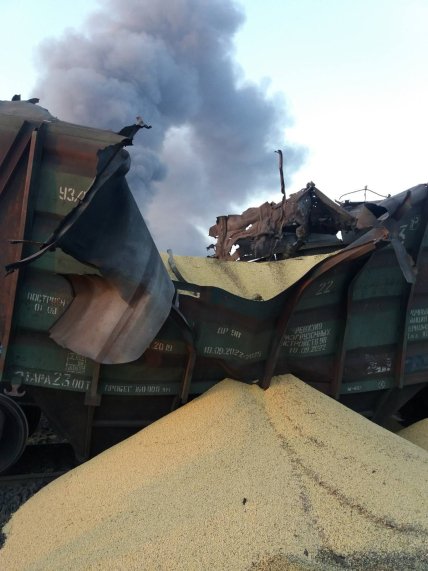 Під час російської атаки у ніч на 17 червня було зафіксовано влучання на залізниці. Понівечено вагони з зерном.