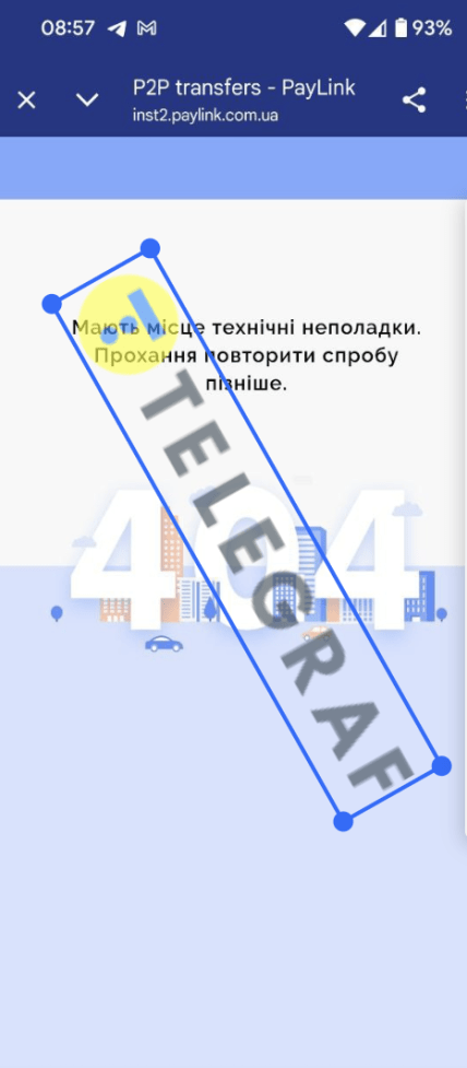 "Мають місце технічні неполадки. Прохання повторити спробу пізніше", — йдеться у повідомленні.