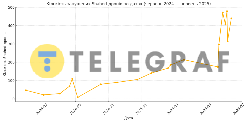 За останній рік Росія різко наростила інтенсивність атак дронами типу Shahed. Якщо ще торік удари зазвичай налічували кількадесят БпЛА, то в травні-червні 2025 року їх кількість почала обчислюватися сотнями за ніч.
