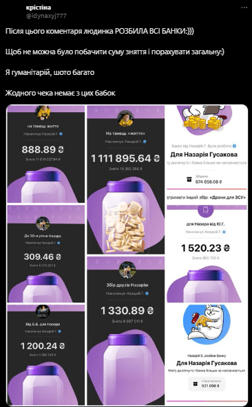 Крім того, після появи коментарів та дописів із закликами опублікувати звіти, хлопець нібито "розбив" всі банки, на які вівся збір коштів. Користувачі припускають, що це було зроблено, аби унеможливити підрахунок зібраної суми та відстежити подальші зняття.
