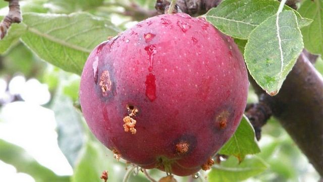 • Найпоширеніші "винуватці" — плодожерка, яблунева міль, вишнева муха, капустяна муха, дрозофіли. Вони відкладають яйця в плід, і вже всередині розвивається личинка (черв’як), яка харчується м’якоттю. Ви можете бачити лише невеликий отвір на шкірці, але всередині плід може бути весь проїдений і зіпсований.
