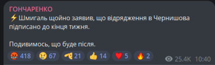 "Шмигаль щойно заявив, що відрядження в Чернишова підписано до кінця тижня. Подивимось, що буде після".