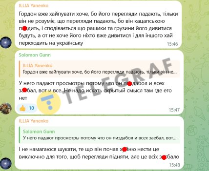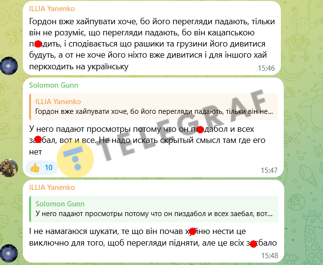 Реакція в соцмережах не змусила себе чекати. Один із користувачів вважає, що журналіст просто намагається знову привернути до себе увагу: "Гордон вже хайпувати хоче, бо його перегляди падають. Тільки він не розуміє, що перегляди падають, бо він російською говорить…" — пише він, наголошуючи, що перехід на українську мову міг би допомогти, але глядачі вже втрачають інтерес.