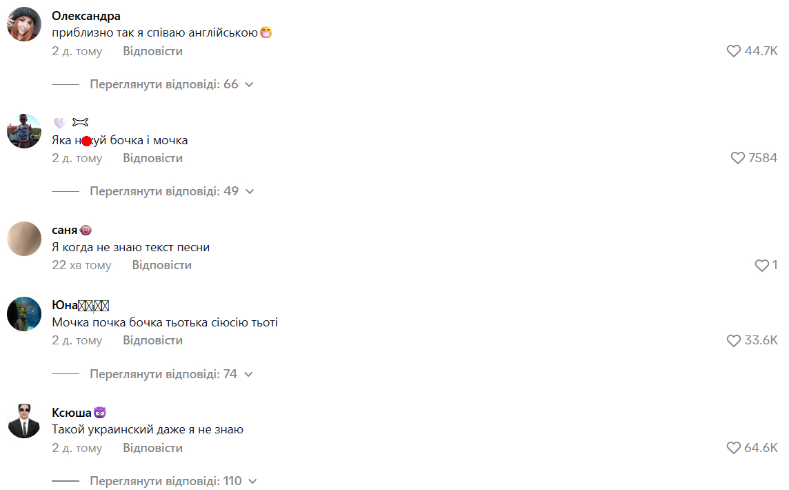 Проте, український трек виявився особливо яскравим прикладом, адже фонетика й лексика даються іноземцям непросто.