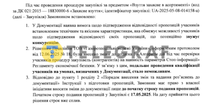 "Суть в тому, що вони не змогли їх акцептувати. Відповідно, скасували повністю закупівлю. "Таланпром" вів свою діяльність в Росії до 2024 року. Тобто, замовник змінив регламент, фактично розчистив дорогу компанії, у якої є зв’язки з Російською Федерацією", – повідомила Анна. Її компанія вже написала скаргу та наразі очікує її розгляду.
