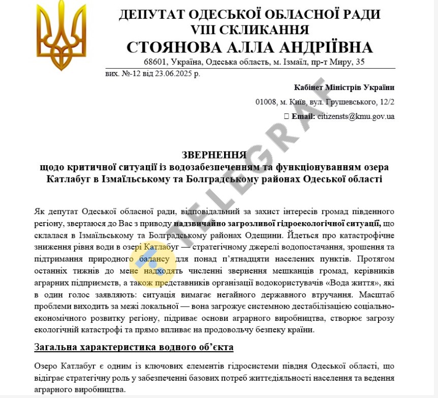 "Масштаб проблеми виходить за межі локальної — вона загрожує системною дестабілізацією соціально-економічного розвитку регіону, підриває основи аграрного виробництва, створює загрозу екологічній катастрофі та прямо впливає на продовольчу безпеку країни", — зазначає депутатка у своєму зверненні.
