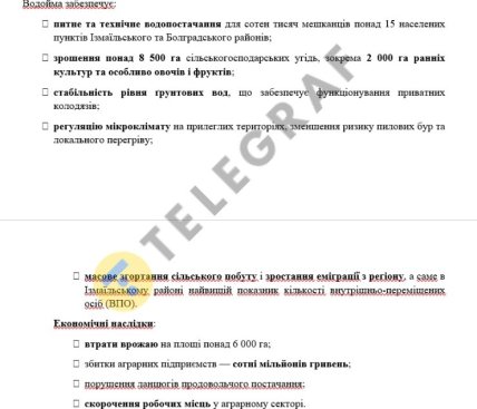 Крім того, жахливими будуть наслідки для сільського господарства, адже Катлабух має ключове значення для зрошувальної системи цілого району.
