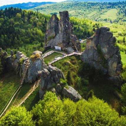 Фортеця Тустань — середньовічне диво в серці Карпат, розташована біля села Урич Сколівського району Львівської області. Вона висічена в камені ще у IX столітті, приваблює туристів своєю унікальною історією та мальовничими краєвидами. Це унікальний архітектурний феномен, адже дерев’яні укріплення були зведені просто на скелях і не мали аналогів у Європі.