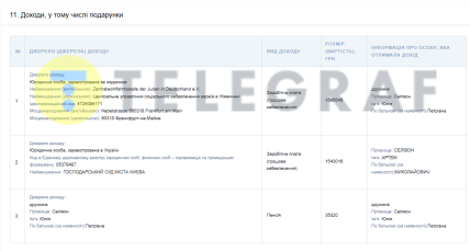 За минулий рік Артем Селівон заробив 1543016 гривень. А його дружина – 1 695 646 гривень. Її пенсія становила 35 320 гривень.