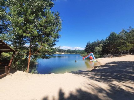 Глибина водойми становить 10-15 метрів. Озеро оточене сосновим лісом. За вхід з людини беруть 50 грн. Орендатор озера побудував вуличні туалети, лавки зі столиками та поставив кіоск, де можна придбати напої і морозиво. На інших з цих чотирьох озер вхід безкоштовний, проте відвідувачі пишуть, що в деяких місцях доволі брудно.