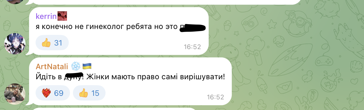 Тобто нардепи Івано-Франківської міської ради закликають президента та Верховну Раду заборонити аборти в Україні, аби покращити демографічну ситуацію. Така пропозиція неабияк обурила українців, адже більшість впевнені, що "жінка сама має вирішувати, що робити з вагітністю". Користувачі наголошують, керуючись прикладами інших держав, що заборона абортів тільки спонукатиме жінок робити це підпільно, травмуючи організм ще більше.