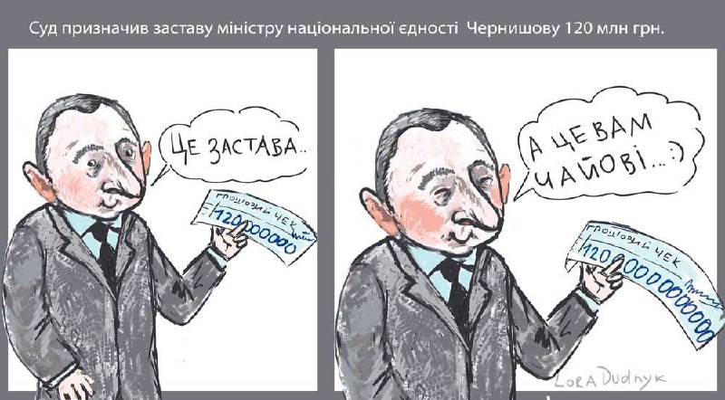 Такий допис опублікували в Telegram-каналі. Найяскравіше реакцію користувачів утілила свіжа карикатура-мем, де посадовець недбало кидає грошовий чек зі словами: "Це — застава…ча А це вам як чайові".