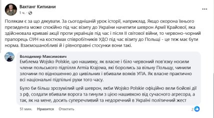 Річ у тому, що у його охоронця помітили нагрудний символ "Армії Крайової", підпільної організації, яка за часів Другої світової війни була причетна до вбивств українців. Увагу на це звернув журналіст та боєць 13-ї бригади НГУ Вахтанг Кіпіані.