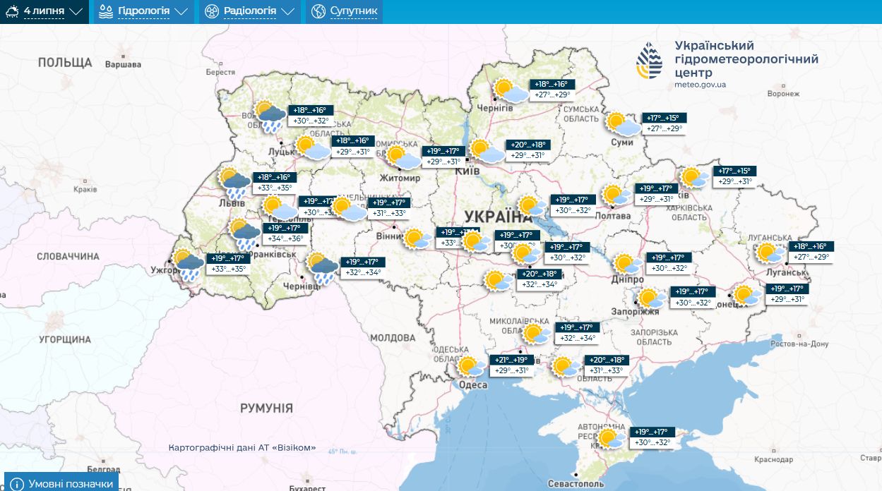 Варто зазначити, що УГМЦ дає дещо інший прогноз. За їхніми даними, 4 липня опади можливі, але на території західних областей. На решті України синоптики чекають сухої, але хмарної погоди.