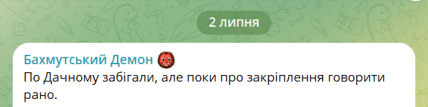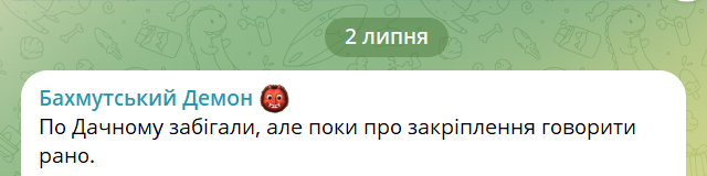 Військовий з позивним "Бахмутський демон" підтвердив "забіги" ворога у Дачне. Проте, закріпитися в населеному пункті ворог не зміг.