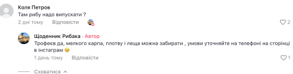 "Трофеїв — так, дрібного коропа, плотву і ляща можна забирати", — йдеться у повідомленні.