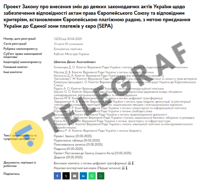 Водночас цей законопроект потрібен для входження України до європейської системи платежів SEPA. Це дозволить українцям переказувати гроші в євро швидко та безкоштовно.