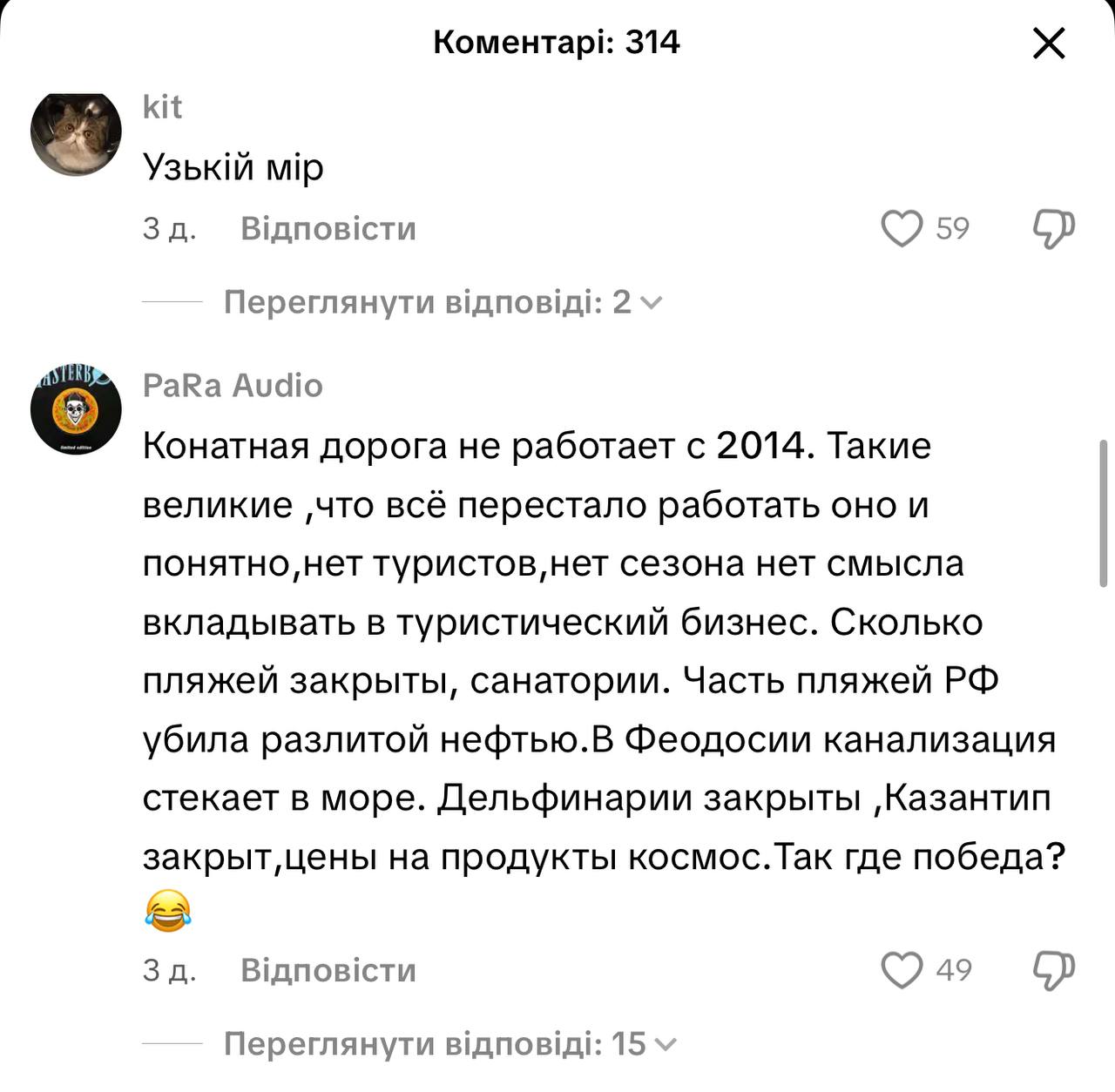 Люди скаржаться, що дійти до пляжу і не зламати ноги — справжній квест. На відео помітно, що сходи до води у катастрофічному стані, їх би мали відремонтувати, перевірити до відкриття сезону, але ймовірніше, що Путін використовує півострів, як військову базу, а ті "обіцянки" про відпочинок і дороге життя так і лишилось локшиною на вухах кримчан.