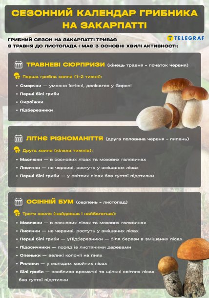 Грибний сезон на Закарпатті доволі щедрий. Головне — знати де шукати, коли їхати та як не отруїтися. Пам'ятайте: ліс — це не тільки гриби, а й відпочинок для душі серед неймовірної краси карпатської природи.