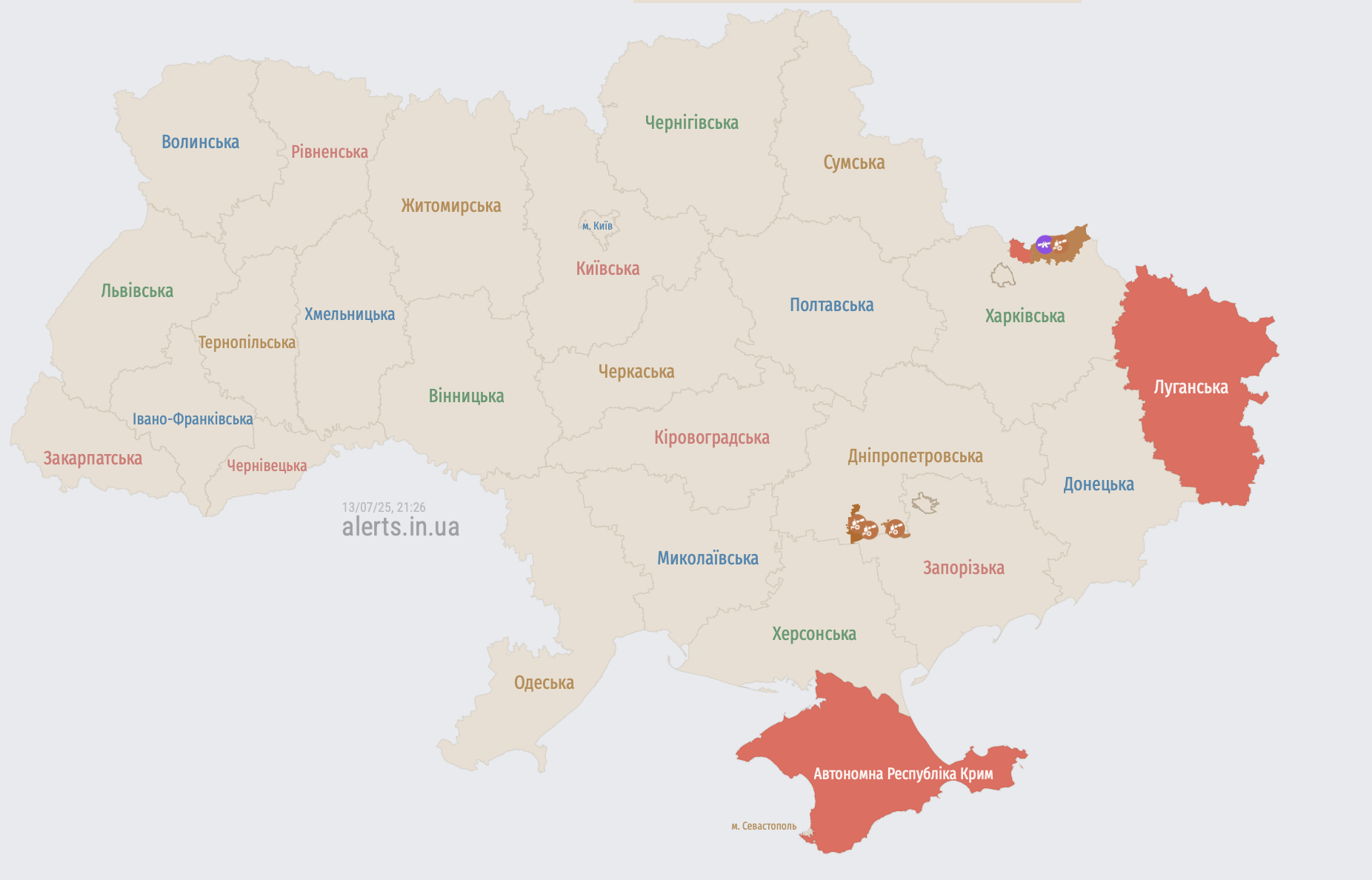 Повітряна тривога наразі зафіксована лише в Луганській області.