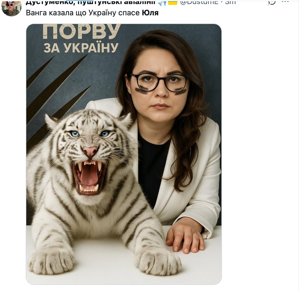 Стародавнє інтернет-пророцтво збулося і жінка таки незабаром зможе очолити український уряд. У таємних окультних спільнотах Жмеринки, сформованих з переможців "Битв екстрасенсів" та "Гри в кальмара", розгорнули стародавні сувої, в яких ще за часів Тутанхамона було записано, що її зватимуть Юлія. Ось тільки важливого "кільцеподібного" елемента зачіски у неї не виявилось. Що ж, навіть Ванга помиляється.