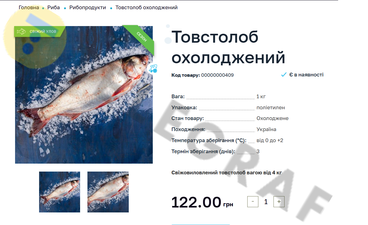 Товстолоба охолодженого зараз в Україні продають за 122 гривні за кілограм. За таку ціну пропонують свіжовиловленого товстолоба вагою від 4 кг.