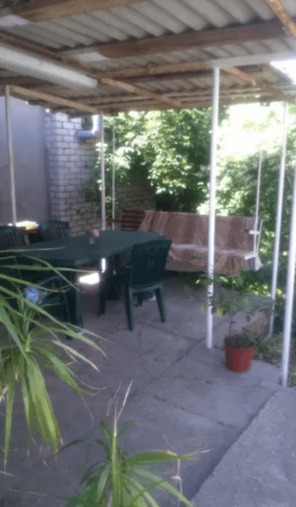 Авторка оглошення зазначила: для гостей передбачені пральна машина, холодильник, мікрохвильова піч, праска та інша побутова техніка. У вітальні встановлено телевізор, доступний Wi-Fi, а у дворі є простора тераса з навісом, столом, стільцями та гойдалкою — ідеальне місце для відпочинку на свіжому повітрі.