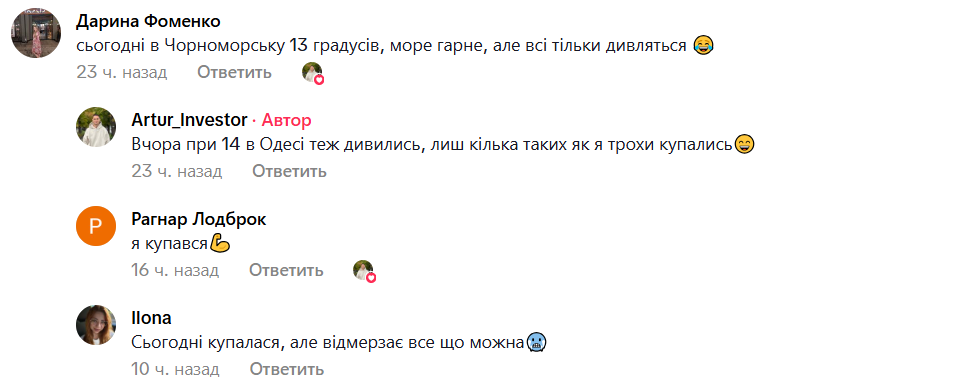 Інтернет-користувачі гадають, у чому причина такого явища. Місцеві жителі не дивуються: одні зазначають, що температура води залежить не від погоди, а від течії, інші пояснюють, що море буде холодним, доки не зміниться вітер. Однак вода тоді буде брудною.