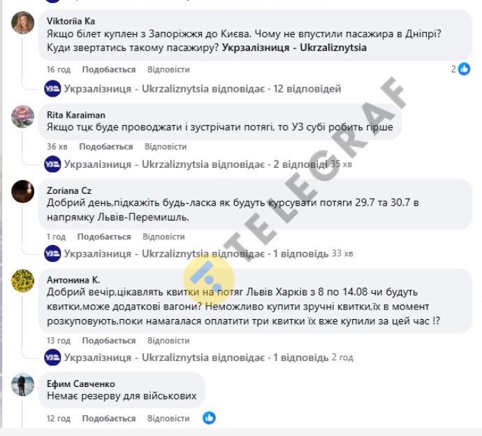 Українці у коментарях висловили невдоволення новими правилами та наболілим — неможливість купити квитки на популярні маршрути і проблемами з кондиціонерами в поїздах під час спеки. Зокрема, Юлія Колодкіна написала: "Краще б Укрзалізниця контролювала справність кондиціонерів у вагонах. Сьогодні їхали потягом Мукачево-Одеса, вагон люкс і в ньому не працює кондиціонер".