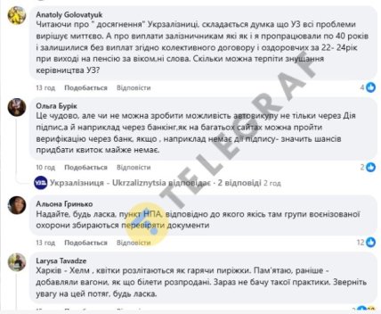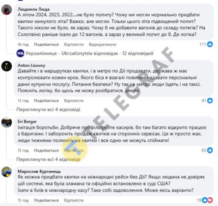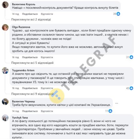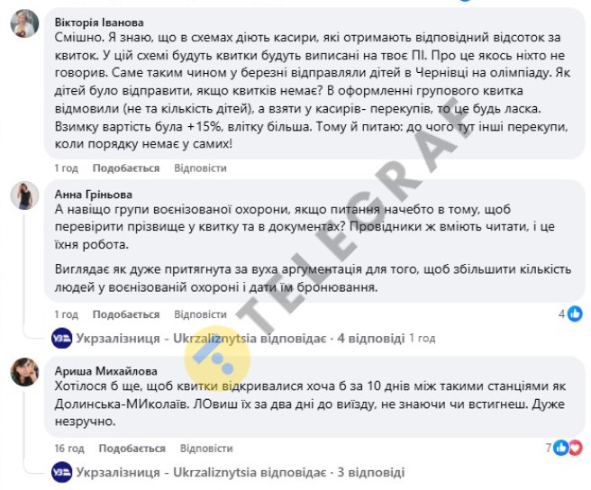 Декілька користувачів звинуватили працівників Укрзалізниці в співпраці з перекупниками. Дехто навіть закликав НАБУ перевірити компанію на предмет проблем із квитками. Вони зазначили, що у минулі роки квитки все ж таки були, а цього року раптом зникли. Інші також написали, що останній рік провідники взагалі не перевіряли документи пасажирів. Це може свідчити про спекуляцію квитками працівниками УЗ.