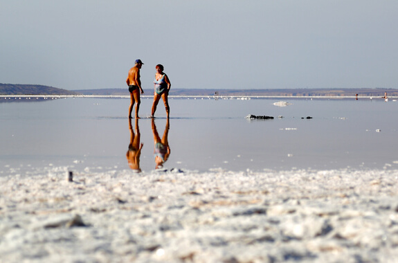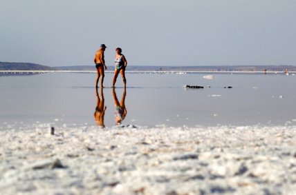 Куяльницький лиман на північно-західному узбережжі Чорного моря міліє. Він так пересох, що можна збирати сіль.