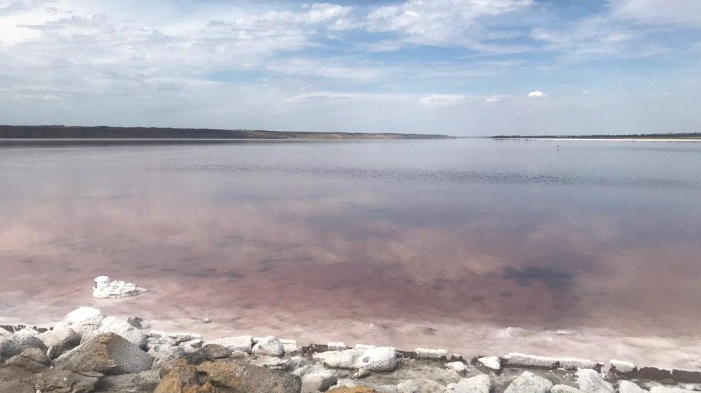 Відео з лиманом, що значно зменшився в розмірі, показали в мережі. На ділянках, звідки відступила вода, залишилася сіль, що виглядає на сонці, ніби лід.