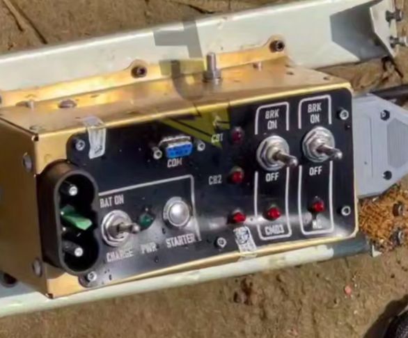 При ближчому розгляді можна помітити кнопку Starter і кілька тумблерів з написами BAT (батарея) і BRK (гальма/блокування), що може говорити про те, що це елемент наземної пускової установки. Крім того, можна бачити лампочки CB1 та 2 (Circuit Breaker – автоматичні вимикачі) та стандартний COM-порт для підключення зовнішнього обладнання, наприклад, контролера. Великий роз'єм ліворуч із зеленим штирем швидше за все є місцем підключення зовнішнього джерела живлення.