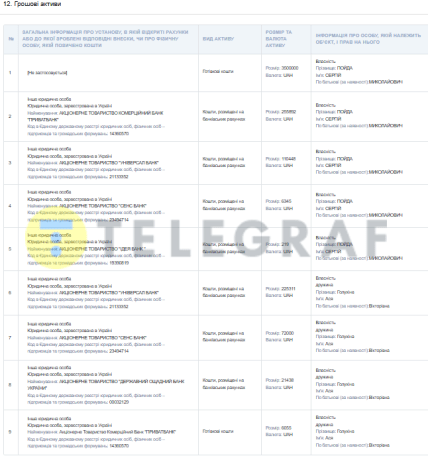 У готівкових заощадженнях Сергій Пойда має 3500000 гривень. А його дружина – 6 055 грн. Загалом на банківських рахунках суддя зберігає 372 904 гривні. Його дружина зберігає на рахунках загалом 318 749 гривень.