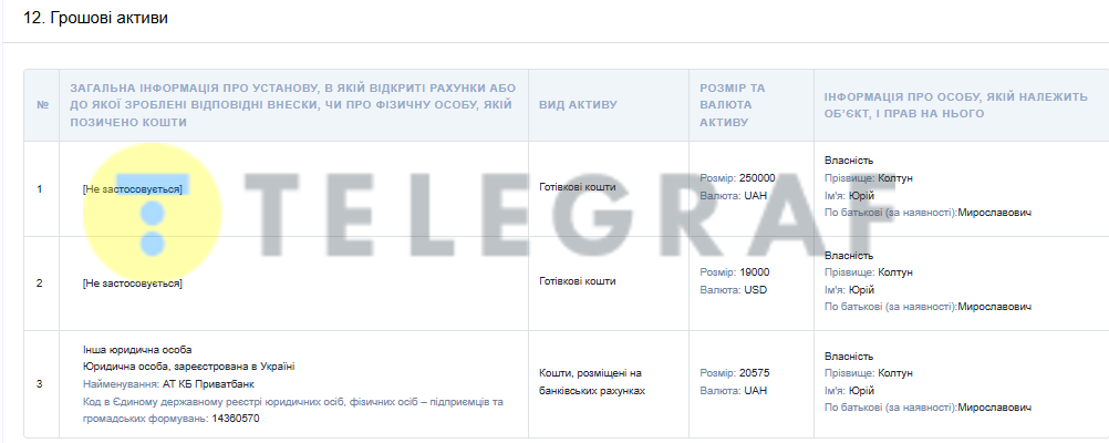 Заробітна плата Колтуна минулого року склала 1 075 110 гривень. Ще 400 000 гривень він отримав прибуток від продажу рухомого майна.